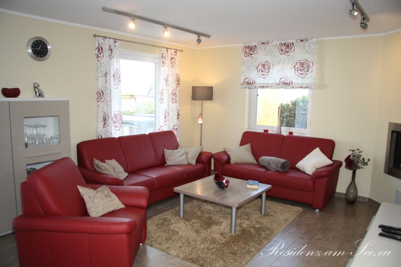 Der Wohnraum ist unter anderem ausgestattet mit zwei Sofas sowie einem Sessel. Der per Knopfdruck steuerbare Gaskamin sorgt im Winter für wohlige Wärme und eine wunderbar gemütliche Atmosphäre. Damit es Ihnen an nichts fehlt verfügt der Raum zusätzlich über einen DVD-Player, eine HiFi-Anlage und Sat TV. Selbstverständlich haben wir hier für die gemütlichen Abende einige Bücher, DVDs und Spiele für Sie bereitgestellt.