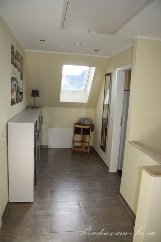 Sie betreten das Haus durch unseren Hauseingang und sind direkt im Flur. Hier befindet sich die Garderobe mit Ablagemöglichkeit sowie ein großer Spiegel.