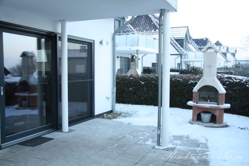 Vom Wohn-Essbereich aus haben Sie die Möglichkeit, die Terrasse durch ein großes Türelemente zu betreten. Unsere Terrasse ist komplett ausgestattet mit Gartenstühlen, einem Tisch, Sonnenliegen und Sonnenschirm. Durch den darüber liegenden Balkon können Sie die Terrasse sogar bei einem kleinen Schauer nutzen.