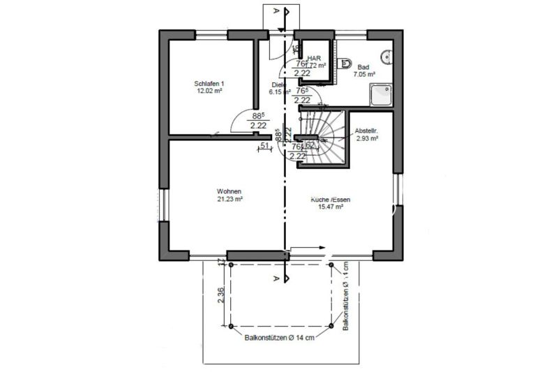 Nun gehen wir zurück in den Flur und von dort über einige Treppenstufen in das obere Geschoss.